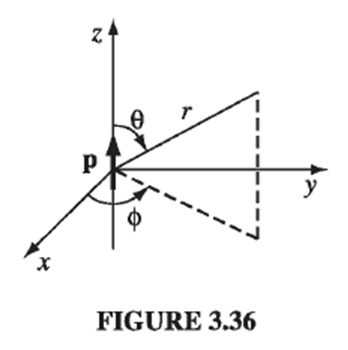 An ideal electric dipole is situated at the origin, and points in the direction, as in Fig. 3.36. An electric charge is released from rest at a point in the x-y plane. Show that it swings back and forth in a semi-circular arc, as though it were apendulum supported at the origin.