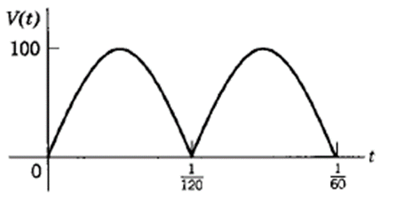 . Output of a simple d-c generator; the shape of the curve is the absolute value of a sine function. Let the maximum voltage be 100V.