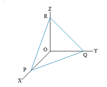 The given plane is . Let the given plane intersects co-ordinate axes, localid="1659009881863" (O the origin) at points,and. Then points satisfy the equation of the plane. Thus, the obtained results are:-