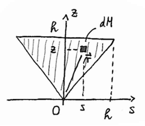 The gravitational attraction on a unit mass at the origin due to a mass (of constant density) occupying the volume inside the cone is