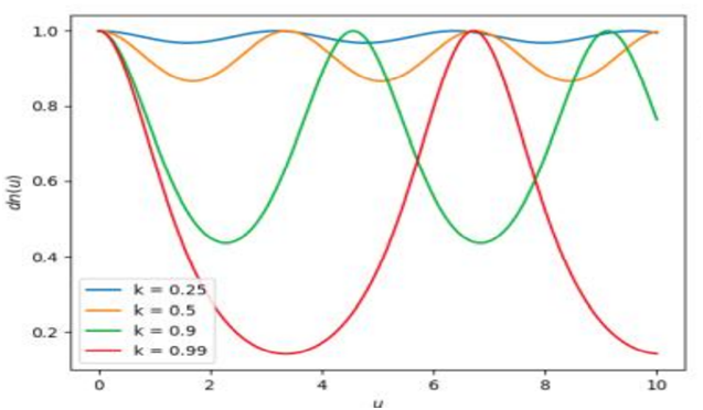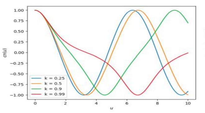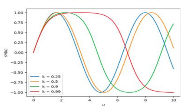 Computer plot graphs of sn u, cn u, and dn u, for several values of k, say, for example, .Also plot 3D graphs of sn, cn, and dn as functions of u and k.