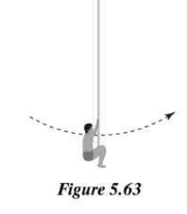 Tarzan swings from a vine. When he is at the bottom of his swing, as shown in Figure 5.63, which is larger in magnitude: the force by the Earth on Tarzan, the force by the vine (a tension force) on Tarzan, or neither (same magnitude)? Explain how you know this.