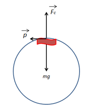 Also, the car is under two forces, the centrifugal force , and its weight mg, and at the top of the path, both forces are in opposite direction to each other so the net force of both forces is: