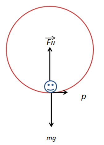 Also, the rider is under two forces, the force exerted by the seat where its direction is upward, and his weight mg and it is downward as shown in the free-body diagram below, so the net force of both forces is: