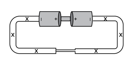 (c)Compare the brightness of the bulb in this circuit with the brightness the bulb would have had if one of the batteries hadn鈥檛 been put in backwards.