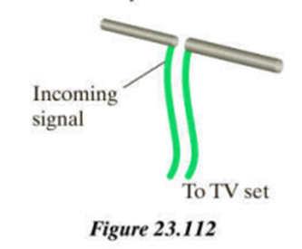 Television antennas often have one or more horizontalmetal bars mounted behind the receiving antenna and insulated from it, as shown in Figure 23.113. Explain qualitatively whyadding a second metal bar can make the television signal either stronger or weaker, depending on the distance between the front receiving antenna and the second bar.