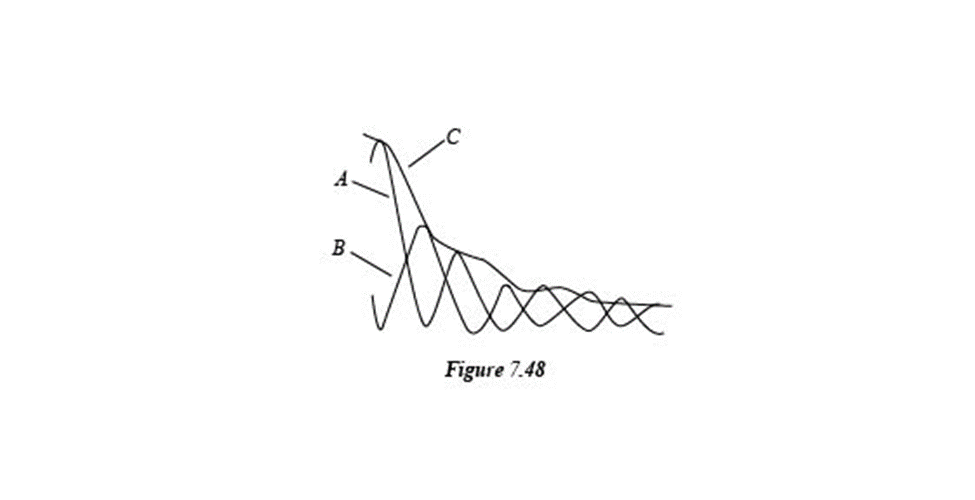 Question: Figure 7.48 is a portion of a graph of energy terms vs, time for a mass on a spring, subject to air resistance. Identify and label the three curves as to what kind of energy each represents. Explain briefly how you determined which curve represented which kind of energy.