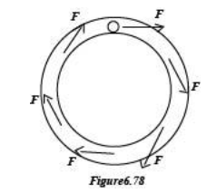 A particle moves inside a circular glass tube under the influence of a tangential force of constant magnitude F (Figure 6.78). Explain why we cannot associate a potential energy with this force. How is this situation different from the case of a block on the end of a string, which is swung in a circle?