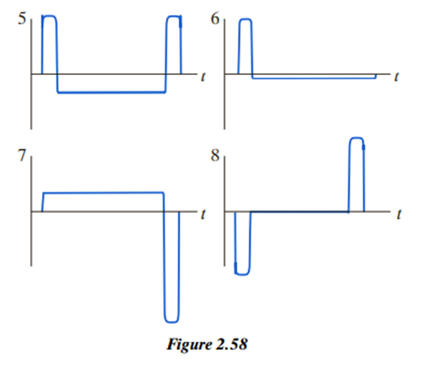 Consider the three experiments described in Problem 30. Figure 2.58 displays four graphs of Fnet, x, the x component of the net force acting on the cart, vs. time. The graphs start when the cart is at rest, and end when the cart is again at rest. Match the experiment with the graph