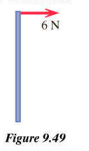A meter stick whose mass is lies on ice (Figure 9.49). You pull at one end of the meter stick, at right to the stick, with a force of . The ensuing motion of the meter stick is quite complicated, but what are the initial magnitude and direction of the rate of change of the momentum of the stick, , when you first apply the force? What is the magnitude of the initial acceleration of the center of the stick?