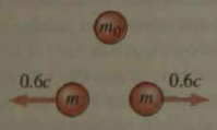 Question: In the frame of reference shown, a stationary particle of mass m0 explodes into two identical particles of mass m moving in opposite directions at 0.6c . Momentum is obviously conserved in this frame. Verify explicitly that it is conserved in a frame of reference moving to the right at 0.6c .