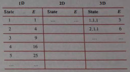 (a) The table shows a start on accounting for allowed states. Complete the table, stopping after the 10th state (state, not energy) for all three cases.