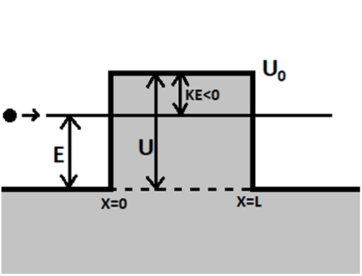 A particle of mass m and energy E moving in a region where there is initially no potential energy encounters a potential dip of width L and depth .