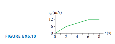 FIGURE EXshows the velocity graph of a object as it moves along the x-axis. What is the net force acting on this object at ? At s? At s?