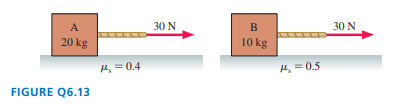 Boxes A and B in FIGURE Q6.13 both remain at rest. Is the friction force on A larger than, smaller than, or equal to the friction force on B? Explain