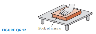 A hand presses down on the book in FIGURE Q6.12. Is the normal force of the table on the book larger than, smaller than, or equal to mg?