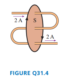 What is the current through surface in FIGURE Q31.4 if you curl your right fingers in the direction of the arrow?