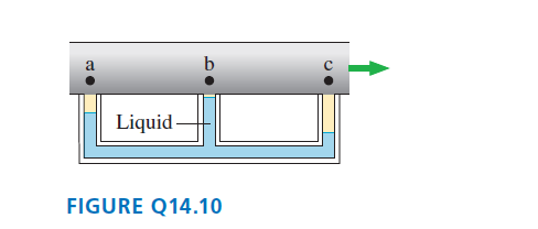 Gas flows through the pipe of FIGURE Q14.10. You can鈥檛 see into the pipe to know how the inner diameter changes. Rank in order, from largest to smallest, the gas speeds va , vb , and vc at points a, b, and c. Explain.