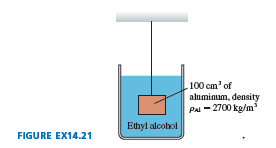 You need to determine the density of a ceramic statue. If you suspend it from a spring scale, the scale reads . If you then lower the statue into a tub of water, so that it is completely submerged, the scale reads . What is the statue's density