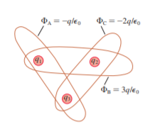 FIGURE shows three Gaussian surfaces and the electric flux through each. What are the three charges q1,q2andq3?