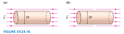 What is the net electric flux through the two cylinders shown inFIGURE EX24.16? Give your answer in terms of RandE