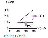 The cycle of FIGURE EX consists of four processes. Make a table with rows labeled to and columns labeled , , and . Fill each box in the table with ,, or to indicate whether the quantity increases, decreases, or stays the same during that process.