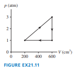 A gas following the trajectory of FIGURE does of work per cycle. What is ?