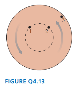 13. FIGURE Q4.13 shows three points on a steadily rotating wheel.