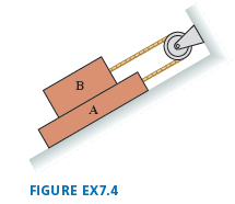 Block in is heavier than block and is sliding down the incline. All surfaces have friction. The rope is massless, and the massless pulley turns on frictionless bearings. The rope and the pulley are among the interacting objects, but you’ll have to decide if they’re part of the system.