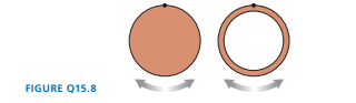 The solid disk and circular hoop in FIGURE have the same radius and the same mass. Each can swing back and forth as a pendulum from a pivot at the top edge. Which, if either, has the larger period of oscillation?