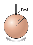 A solid sphere of mass and radius is suspended from a thin rod, as shown in