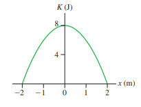 FIGURE EX is a kinetic-energy graph of a mass oscillating on a very long horizontal spring. What is the spring constant?