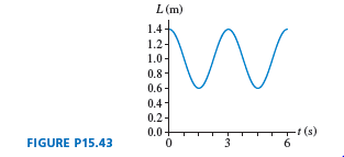 Astronauts in space cannot weigh themselves by standing on a bathroom scale. Instead, they determine their mass by oscillating on a large spring. Suppose an astronaut attaches one end of a large spring to her belt and the other end to a hook on the wall of the space capsule. A fellow astronaut then pulls her away from the wall and releases her. The spring's length as a function of time is shown in FIGUREP15.43.