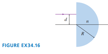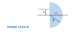 FIGURE EX34.16 shows a transparent hemisphere with radiusand index of refraction n. What is the maximum distancefor which a light ray parallel to the axis refracts out through the curved surface?