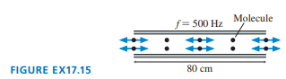 FIGURE EX17.15 shows a standing sound wave in an 80-cm-long tube. The tube is filled with an unknown gas. What is the speed of sound in this gas?