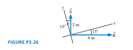 FIGURE P3.26shows vectors A→&B→. Find D→=2A→+B→. Write your answer in component form.