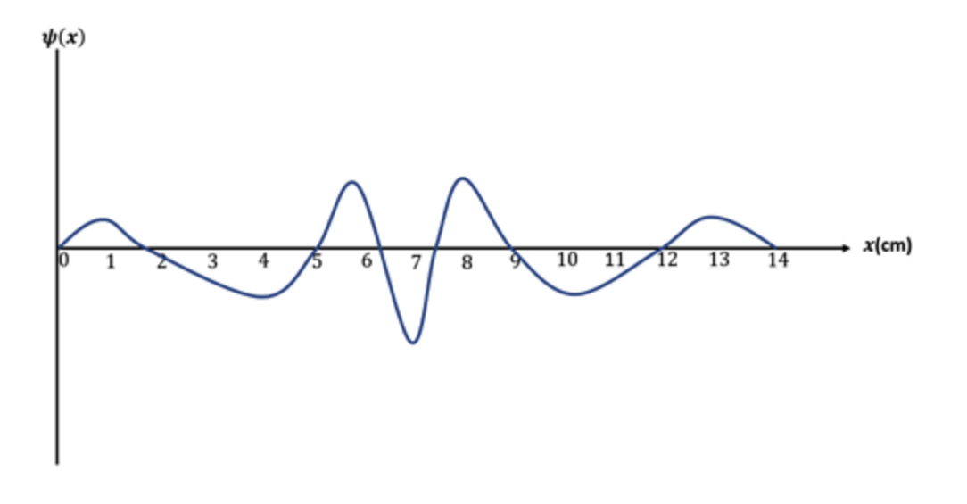 In an interference experiment with electrons, you find the most intense fringe is at x = 7.0 cm. There are slightly weaker fringes at x= 6.0 and 8.0 cm, still weaker fringes at x = 4.0 and 10.0 cm, and two very weak fringes at x= 1.0 and 13.0 cm. No electrons are detected at x <0 cm or x> 14 cm.