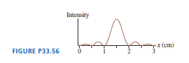 FIGURE shows the light intensity on a screen behind a single slit. The wavelength of the light isand the slit width is . What is the distance from the slit to the screen?