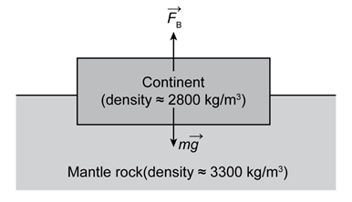 Question: A simple model (Fig. 10–56) considers a continent as a block (density\( \approx {\bf{2800}}\;{\bf{kg/}}{{\bf{m}}^{\bf{3}}}\)) floating in the mantle rock around it (density\( \approx {\bf{3300}}\;{\bf{kg/}}{{\bf{m}}^{\bf{3}}}\)). Assuming the continent is 35 km thick (the average thickness of the Earth’s continental crust), estimate the height of the continent above the surrounding mantle rock.