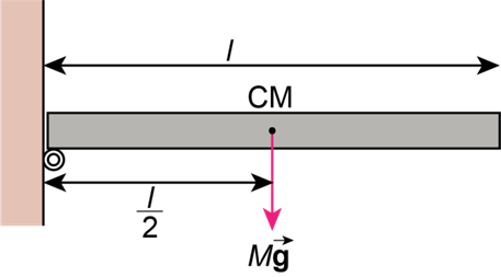 A uniform rod of mass M and length l can pivot freely (i.e., we ignore friction) about a hinge attached to a wall, as in Fig. 8鈥63. The rod is held horizontally and then released. At the moment of release, determine (a) the angular acceleration of the rod, and (b) the linear acceleration of the tip of the rod. Assume that the force of gravity acts at the center of mass of the rod, as shown. [Hint: See Fig. 8鈥20g.]
