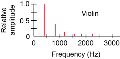 Question: (II) Approximately what are the intensities of the first two overtones of a violin compared to the fundamental? How many decibels softer than the fundamental are the first and second overtones? (See Fig. 12–15.)