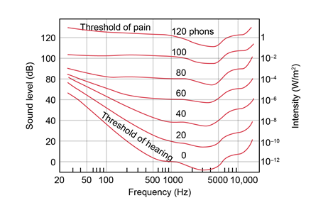 Question: (III) The human ear canal is approximately 2.5 cm long. It is open to the outside and is closed at the other end by the eardrum. Estimate the frequencies (in the audible range) of the standing waves in the ear canal. What is the relationship of your answer to the information in the graph of Fig. 12–6?