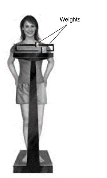 Your doctor’s scale has arms on which weights slide to counter your weight, Fig. 9–35. These weights are much lighter than you are. How does this work?