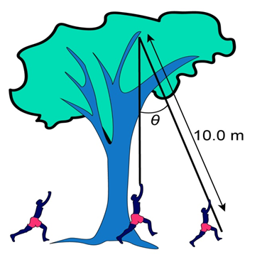 A 56-kg student runs at 6.0 m/s, grabs a hanging 10.0-m-longrope, and swings out over a lake (Fig. 6鈥50). He releases the rope when his velocity is zero. (a) What is the angle \({\bf{\theta }}\)when he releases the rope? (b) What is the tension in the rope just before he releases it? (c) What is the maximum tension in the rope during the swing?
