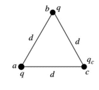 Three point charges, which initially are infinitely far apart, are placed at the corners of an equilateral triangle with sides d. Two of the point charges are identical and have charge q. If zero net work is required to place the three charges at the corners of the triangle, what must the value of the third charge be?