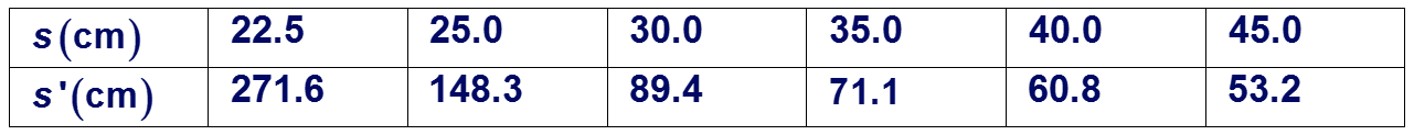Recalling that the object–image relationships for thin lenses and spherical mirrors include reciprocals of distances, you plot your data as 1/s' versus 1/s . (a) Explain why your data points plotted this way lie close to a straight line. (b) Use the slope and y - intercept of the best-fit straight line to your data to calculate the index of refraction of the glass and the radius of curvature of the hemispherical surface of the rod. (c) Where is the image if the object distance is ?