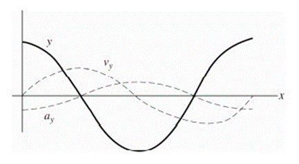 A wave on a string is described by\(y\left( {x,t} \right) = Acos\left( {kx - \omega t} \right)\). (a) Graph \(y,\,{v_y}\,and\,{a_y}\)as functions of \(x\) for time\(t = 0\). (b) Consider the following points on the string:\(\left( i \right) x = 0;\left( {ii} \right) x = {\pi \mathord{\left/
